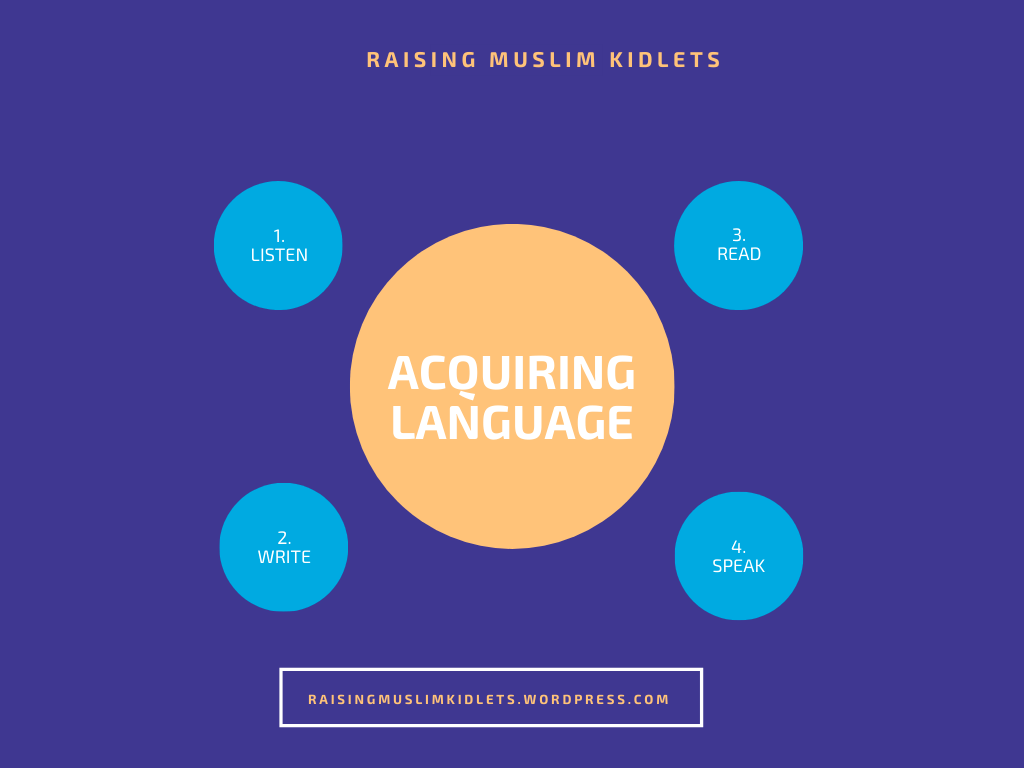This last step in acquiring a language requires us as parents to speak as normally as possible to our young babies. This means, no baby talk and speak to them as if they are a real talker. If they are cooing, respond animatedly and clearly with real words and not repeat their “ba -ba ” and “da da”. Expand their vocabulary and once your child can talk, they can speak clearly inshaAllah. When your child starts making sentences, encourage them to speak more by expanding the conversations. For example, your child might say “I want to go to the park” Respond by asking a few questions “What shall we bring to the park?” or “What time should we go out?”
