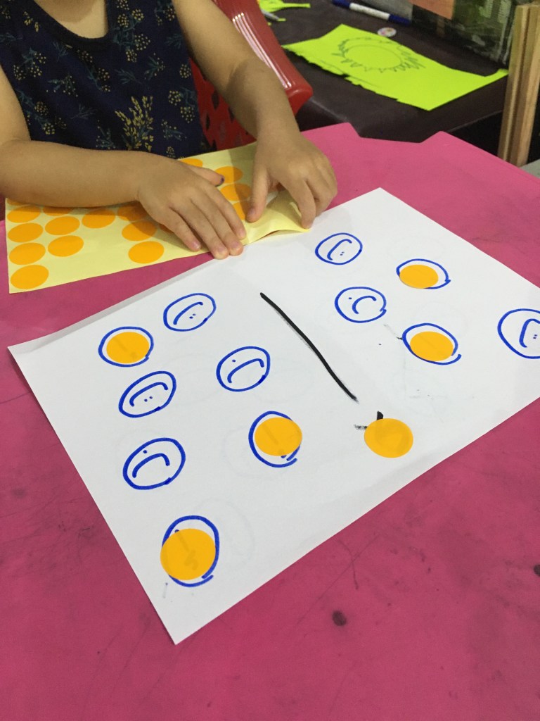 What I would like to highlight is that, in setting up any activities for your child, lower your expectation. You might think that you had put in so much effort in setting up the materials, yet your child is only interested in doing it for 5 minutes! It is really okay! Let your child lead you to his own interest. Maybe you present it when he is occupied with something else, maybe he has unmet needs, maybe it is too easy/ too advanced for him. At the end of the day, learning should be fun , and if you as a mother stresses out, your child can sense it and no learning will be done.